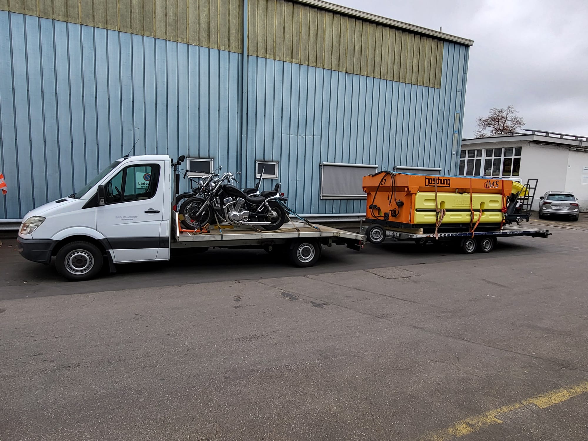Wir transportieren fast jedes Auto, Wohnmobil oder auch Anhänger bis 3,5 Tonnen.